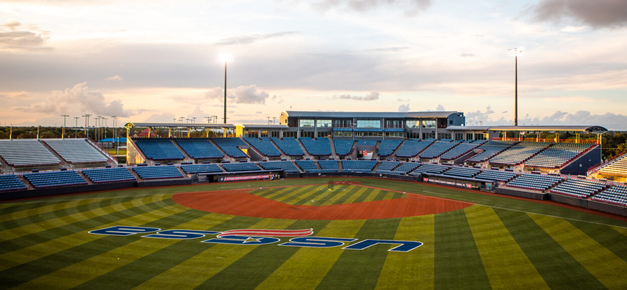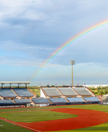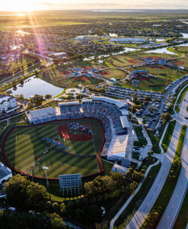 Resting on 85 acres, the complex boasts 15 all turf fields, 5 of which are NCAA approved. Our 1.3 million square feet of AstroTurf easily handles 8 inches of rain and requires zero field maintenance after a rain delay to prep the field, maximizing your playing experience. Teams who visit our pristine grounds can also take advantage of the following on-site covered batting cages, weight room accessibility, live streaming on all fields (including a 4K equipped control room!), FlightScope tracking radar, score boards on every field, three HD video boards, Musco LED lighting, and stadium field suites.